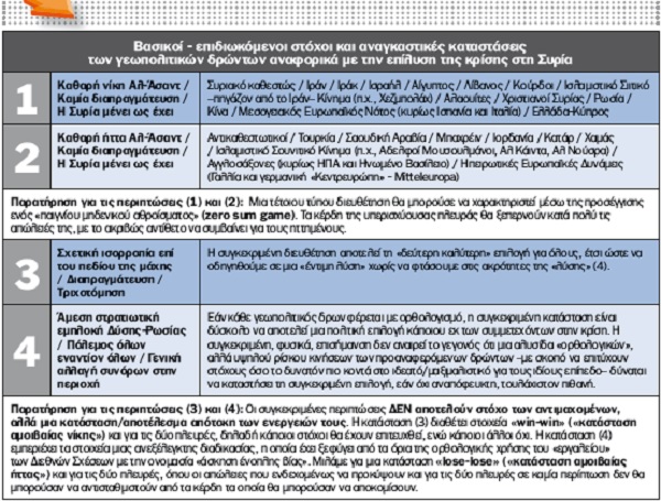 | Posted: 02 Sep 2013 03:25 AM PDT Του Δόκτορα Γεωργίου Φίλη Η κλιμάκωση που παρατηρείται το τελευταίο διάστημα στη Συρία και η επικείμενη δυτική εμπλοκή θέτει το καίριο ερώτημα για το ποιοι είναι οι στόχοι των εμπλεκομένων στην κρίση. Σε μια προσπάθεια να συστηματοποιήσουμε ένα τόσο περίπλοκο ζήτημα, θα αναφερθούμε στα τρία κύρια γεωπολιτικά σύμπλοκα που επηρεάζονται από την κρίση, καθώς και σε τέσσερις κύριες κατηγορίες εμπλεκομένων, οι οποίοι είναι οι: * Αντιμαχόμενες παρατάξεις στο εσωτερικό της Συρίας. * Κύριοι τοπικοί κρατικοί γεωπολιτικοί δρώντες. * Κύριοι τοπικοί μη κρατικοί γεωπολιτικοί δρώντες. * Κύριοι περιφερειακοί κρατικοί γεωπολιτικοί δρώντες. Οι κατηγορίες αυτές των εμπλεκομένων θα εξεταστούν υπό το πρίσμα του βασικού τους «επιθετικού» και «αμυντικού» γεωπολιτικού στόχου. Ποιους επηρεάζει η κρίση στη Συρία Α. Το τοπικό γεωπολιτικό υποσύστημα «Ευρύτερη Μέση Ανατολή & Βόρεια Αφρική» (Broader Middle East & North Africa - ΒΜΕΝΑ), περιοχή από τον Ινδό ποταμό έως και τον Ατλαντικό, συμπεριλαμβανομένης ms Κεντριά Ασίας. Η περιοχή περιλαμβάνει μια σειρά από κρατικούς και μη κρατικούς γεωπολιτικούς δρώντες, κατά κύριο λόγο θρησκευτικής ή/και εθνοτικής ταυτότητας, οι οποίοι λειτουργούν είτε μέσα στο πλαίσιο ενός κράτους (π.χ., Αλαουίτες, Χεζμπολάχ) είτε σε υπερ-κρατικό επίπεδο (π.χ., Κούρδοι, ισλαμιστικό κίνημα και των δύο δογμάτων κ.λπ.). Β. Το τοπικό γεωπολιτικό υποσύστημα «Υδάτινος Άξονας Μαύρη Θάλασσα - Στενά - Αιγαίο - Ανατολική Μεσόγειος» (ΜΘΣΑΑΜ), που αποτελείται από κυρίως κρατικούς γεωπολιτικούς δρώντες, οι οποίοι είτε είναι περιφερειακοί παράγοντες σε σχέση με το επίκεντρο της κρίσης (π.χ., Ελλάδα-Κύπρος κ.λπ.) είτε είναι άμεσα σχετιζόμενοι με αυτήν (π.χ., Τουρκία, Ισραήλ, Λίβανος κ.λπ.). Γ. Το περιφερειακό γεωπολιτικό υπερσύστημα «Πλανητική Νήσος» (Ευρασία & Αφρική), που περιλαμβάνει κυρίως κρατικούς γεωπολιτικούς δρώντες (π.χ., Αγγλοσάξονες, Κίνα, Ρωσία κ.λπ.), οι οποίοι είναι μεν περιφερειακοί πα-ράγοντες σε σχέση με την υπό εξέταση υπόθεση, τα συμφέροντά τους όμως εκτείνονται πολύ μακρύτερα των τεκταινομένων στις περιοχές ΒΜΕΝΑ και ΜΘΣΑΑΜ. Οι συγκεκριμένοι δρώντες χρησιμοποιούν την κρίση στη Συρία για να επιτύχουν πολύ ευρύτερους στόχους στο επίπεδο της «Πλανητικής Νήσου», οι οποίοι σχετίζονται με μια πλανητικής κλίμακας ανακατανομή ισχύος (πολιτικής / στρατιωτικής / οικονομικής / πολιτισμικής), που άπτεται της παγκόσμιας κυριαρχίας στον 21ο αιώνα. Οπως μπορεί να γίνει αντιληπτό, κάποιος κρατικός ή μη κρατικός (υποεθνικός ή υπερεθνικός δρων) μπορεί να είναι μέλος δύο γεωπολιτικών συμπλοκών ταυτοχρόνως. Για παράδειγμα, η Ρωσία είναι κυρίαρχος παράγοντας τόσο σε «τοπικό» επίπεδο, μέσω της παρουσίας της στον ΜΘΣΑΑΜ, αποτελεί όμως και βασικό συστατικό μέλος τους υπερσυστήματος της «Πλανητικής Νήσου». Η Ελλάδα και η Κύπρος αποτελούν σημαντικότατους παράγοντες που επηρεάζουν και επηρεάζονται από τα τεκταινόμενα στη ΒΜΕΝΑ, αλλά και βασικούς «παίκτες» στον ΜΘΣΑΑΜ, κάτι που συμβαίνει ακριβώς το ίδιο για το Ισραήλ και την Τουρκία. Με άλλα λόγια, τα συμφέροντα και οι στόχοι κάθε εμπλεκομένου στην περιοχή είναι πολυεπίπεδα, πολυσύνθετα και συχνά δυσδιάκριτα. Αντιμαχόμενες παρατάξεις στο εσωτερικό της Συρίας Το Συριακό Καθεστώς έχει ως βασικό «επιθετικό» στόχο τον έλεγχο ολόκληρης της χώρας, καθώς και την εξάλειψη του Σουνιτικού Ισλαμιστικού Κινήματος. 